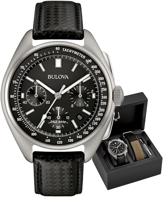 I have several more expensive watches, including a couple of Omegas and a Tag. However, the Bulova "Moonwatch" is an absolute steal. The attention to detail is outstanding and the high frequency quartz movement is very, very accurate. The price of this watch is great and the original strap is great. This watch comes with a very nice presentation box, treat yourself,