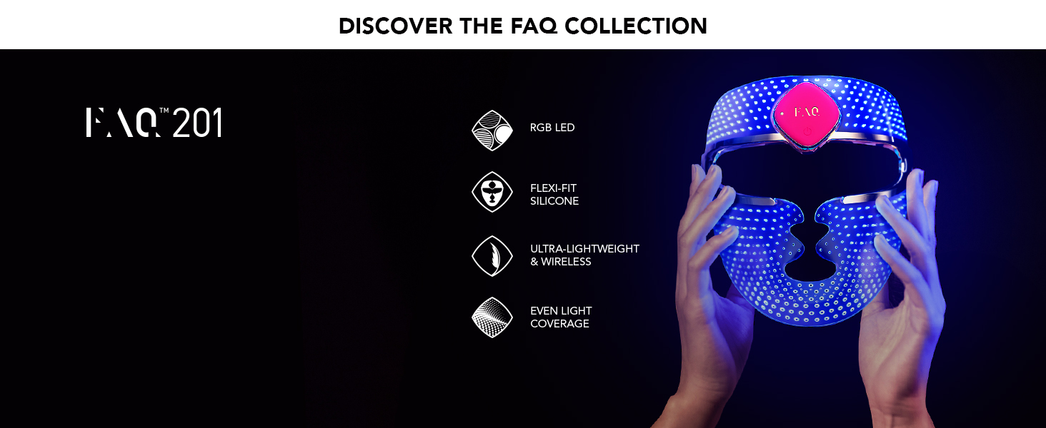 A NEW GENERATION OF LED WEARABLES Ultra-lightweight, wireless flexi-fit silicone light therapy mask, FAQ 202 mimics facial contours to quickly tackle signs of aging & most common skin concerns.