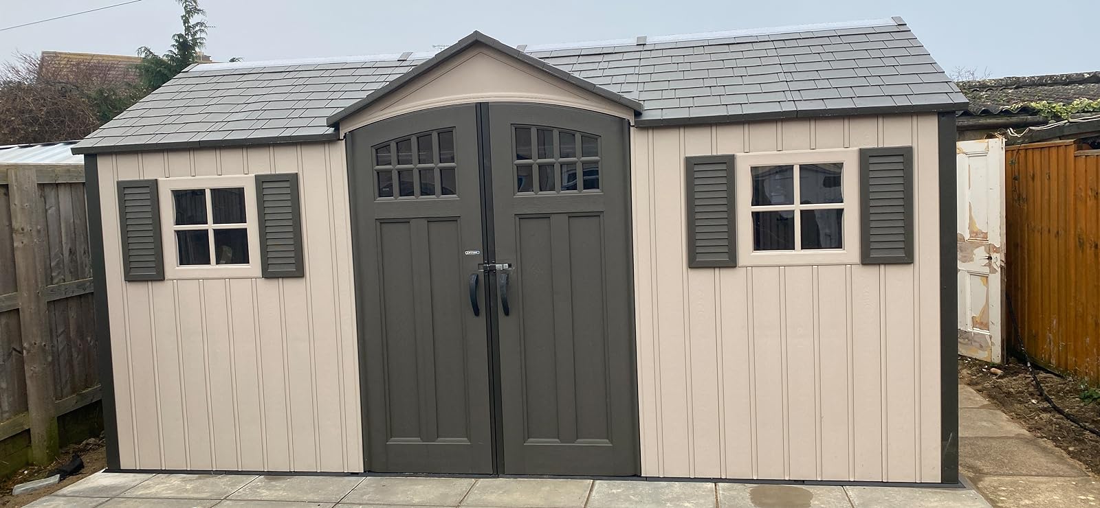 Lifetime 60079 Outdoor Storage Shed, Desert Sand, 15 x 8 ft - Double Door