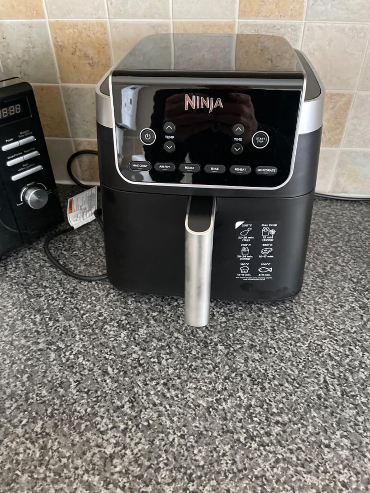 • Ninja Air Fryer MAX PRO, 6.2L, Uses No Oil, Large Square Single Drawer, Roast, Bake, Air Fry, Family Size, Digital, Cook From Frozen, Non-Stick, Dishwasher Safe Basket & Crisper Plate, Grey, AF180UK