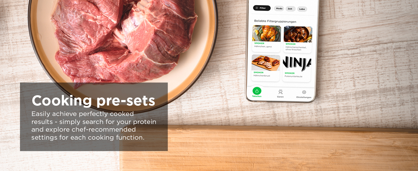 This is a great set that we use for breakfast and dinner. I like that it has different settings and also tells you when to flip the items inside and takes your cooking time into account. The smoked chicken feature is a great addition and we had great experience experimenting with the smoked chicken. We were really impressed as they were very juicy and had a nice crispy exterior. The smoker is very easy to clean, has a removable plate, and the handle for carrying it around is also very useful. This is a smart piece of kit that looks very stylish and stores easily in a good sized cupboard, it's really easy to use.