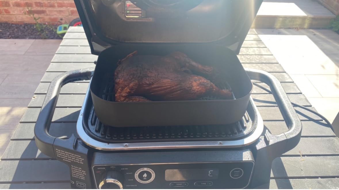 This is a great set that we use for breakfast and dinner. I like that it has different settings and also tells you when to flip the items inside and takes your cooking time into account. The smoked chicken feature is a great addition and we had great experience experimenting with the smoked chicken. We were really impressed as they were very juicy and had a nice crispy exterior. The smoker is very easy to clean, has a removable plate, and the handle for carrying it around is also very useful. This is a smart piece of kit that looks very stylish and stores easily in a good sized cupboard, it's really easy to use.
