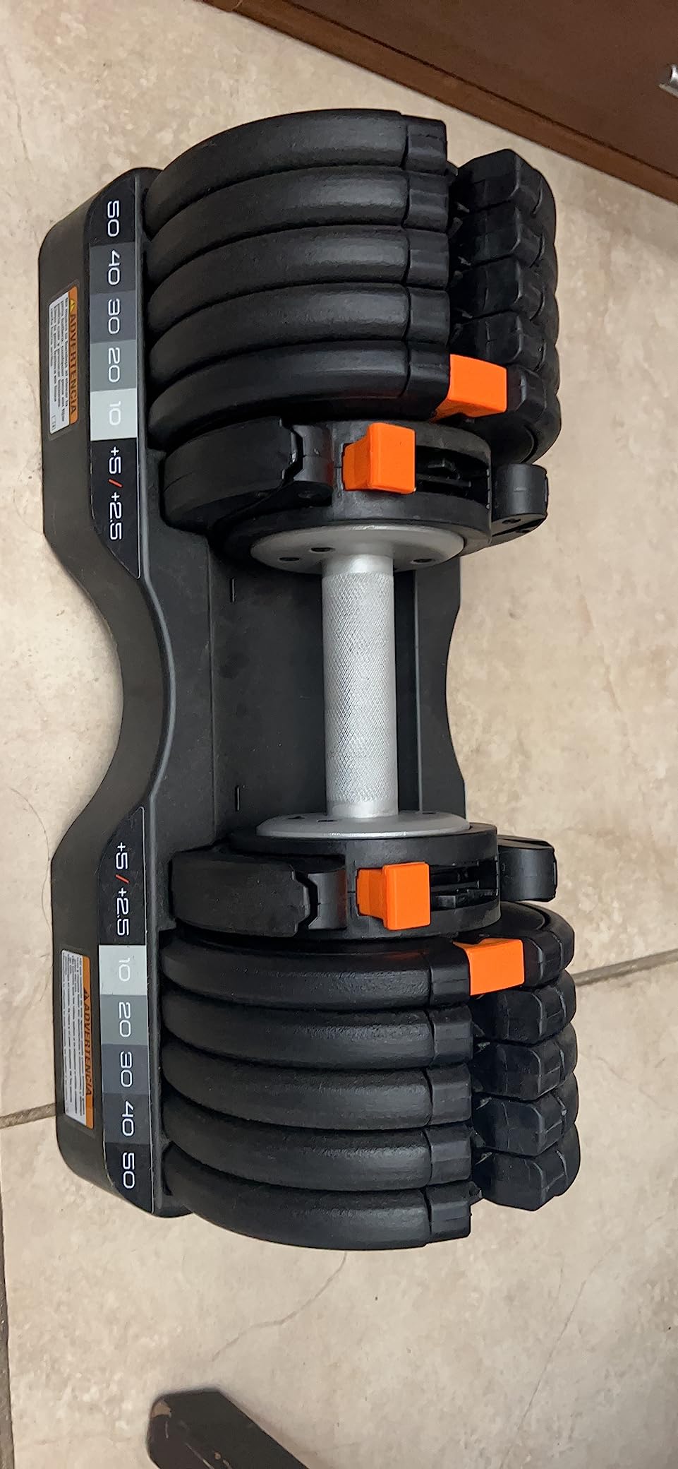 I did my research on adjustable dumbbells. The market has a lot to offer. The main selling point for me was that when I dial in a certain weight, only those weights come out. With other models, brands, the whole set up comes out and makes it difficult to accomplish certain exercises. The second picture show the dumbbells with 10 pounds each. And they look like regular dumbbells. Also with the 2.5 and 5 pound weights you have so many options. Not just 10,20,30,40 and 50 pounds. The price was also right with this particular Nordic Track set. I'm really enjoying my purchase.