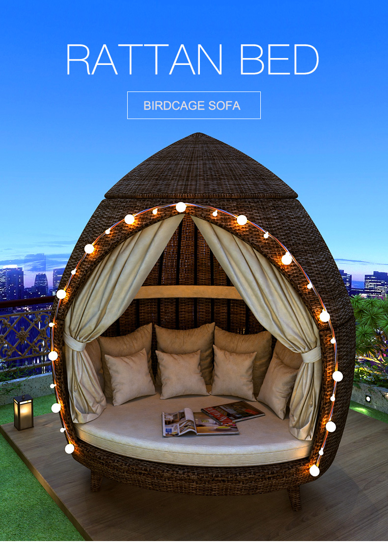 • Vacation beach bed rattan bed terrace sun bed outdoor leisure birdcage sofa outdoor courtyard sun lounger